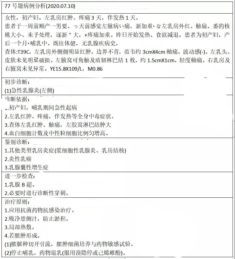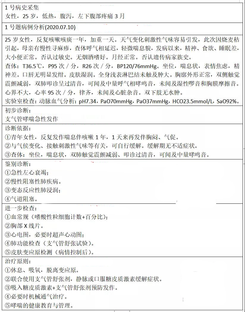 根據(jù)這句簡單的病史手寫出你準(zhǔn)備的答題模板