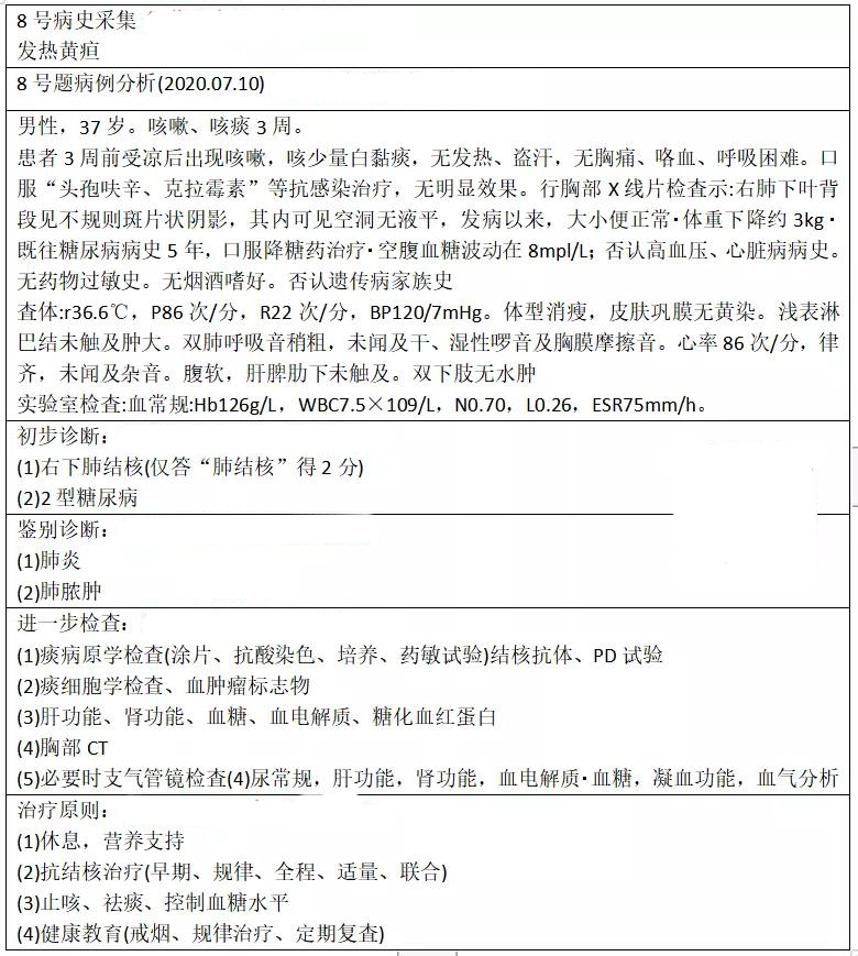 第一考戰(zhàn)共8題選擇題+病史采集+病例分析